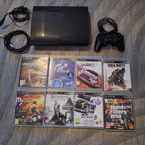 Sony PlayStation 3 Slim CECH-2004A pelikonsoli sisältäen yhden ohjaimen, virtajohdon, HDMI-kaapelin, verkkokaapelin sekä useita pelilevyjä. Koko paketti, sisältää kaiken tarvittavan. Tyhjennetty ja puhdistettu.