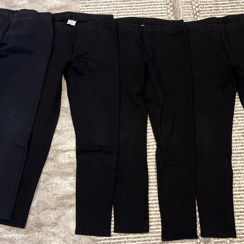 3 kpl mustia legginsejä. Kahdet kokoa 122 H&M:ltä ja yhdet kokoa 122/128 Lupilulta. Siistit ja ehjät.
