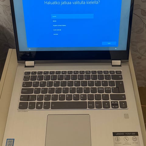 Taittuu halutessa tabletiksi. Kosketusnäyttö.