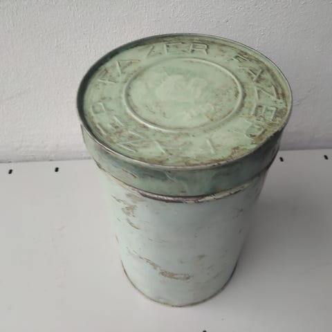 Myyn kuvien 3-kerroksisen peltirasian, keksipurkin.