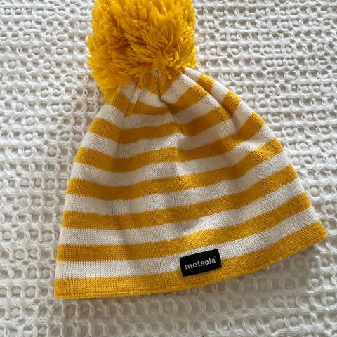 Metsola lasten pipo, koko 7-8v, vaalean violetti väri, valmistettu puuvillasta, irrotettava tupsu. Merkki irronnut reunasta. Yhdellä käytetty.