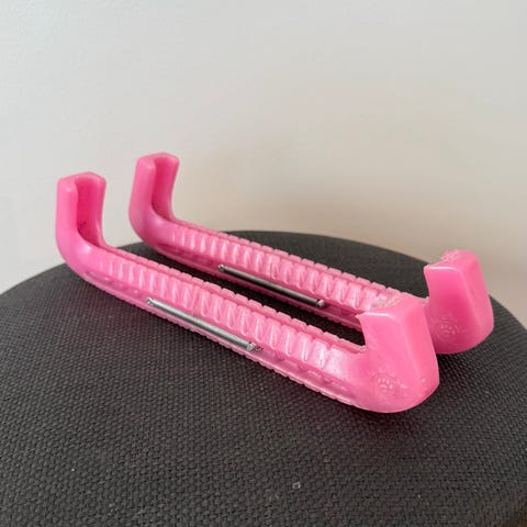 Myydään siniset paljettiset pehmosuojat suojaamaan taitoluistinten teriä. Siistikuntoiset.