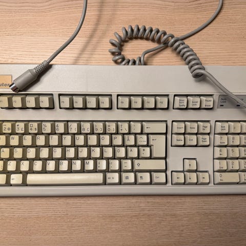 Todella hyväkuntoinen retronäppis, jossa erittäin pehmeän jämäkkä näppäintuntuma, mikä toimii hyvin ainakin kirjoituskäytössä.