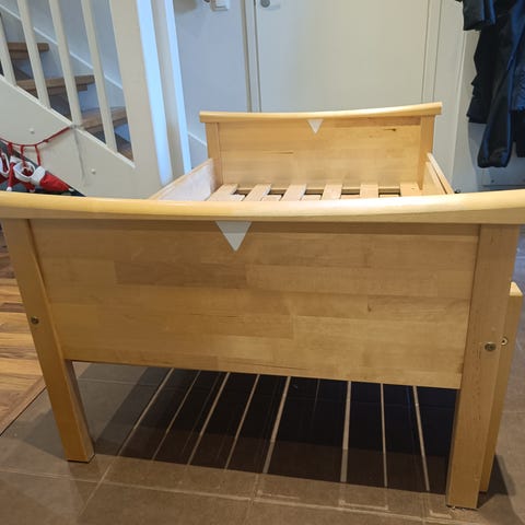 Kuopion Woodin massiivikoivusta valmistettu lasten jatkettava sänky. Ulkopituus lyhyimmillään noin 122 cm ja pisimmillään noin 208 cm. Ulkolevyes leveimmästä kohdasta noin 86 cm. Sisäleveys kapeimmasta kohdasta noin 76 cm.