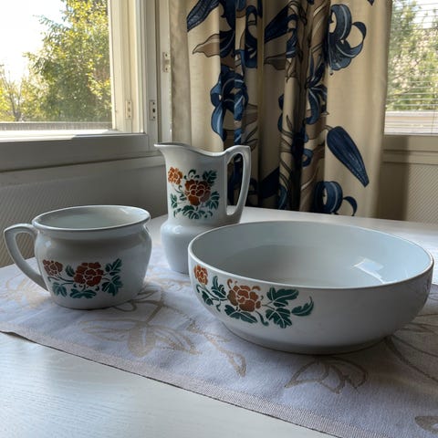 Hyvässä kunnossa. Pohjassa punainen kohta lasitteen alla.