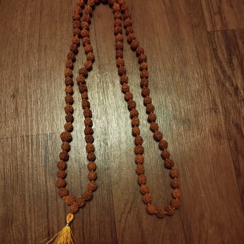Uusi rudraksha-mala, tuotu Intiasta.