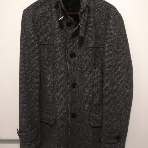 Hyvässä kunnossa oleva tummanharmaa villakangastakki. Sisäpuolella 2 povitaskua. Vuorikangas hieman nukkaantunut.