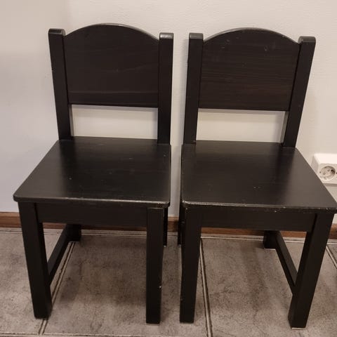 Lasten puutuolit, olleet aikoinaan eskarissa käytössä. Kestävät istua aikuisenkin. Käytön jälkiä on, kunnostamalla saa uuden näköiset, mutta suht siistit noinkin.