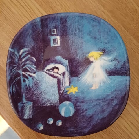 Arabian "Anna meille enkeleitä" -seinälautanen, jonka on suunnitellut Riittatuulikki Hirvonen. Hinta 15 e + postit tai nouto Arkadiankatu/ Hki. Hyväkuntoinen.