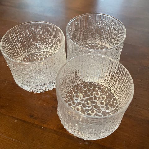 Iittala Ultima Thule lasi kirkasta lasia. Lasissa on ainutlaatuinen teksturoitu pinta, joka muistuttaa sulavaa jäätä. Sopii käytettäväksi juomalasina erilaisiin tilanteisiin.