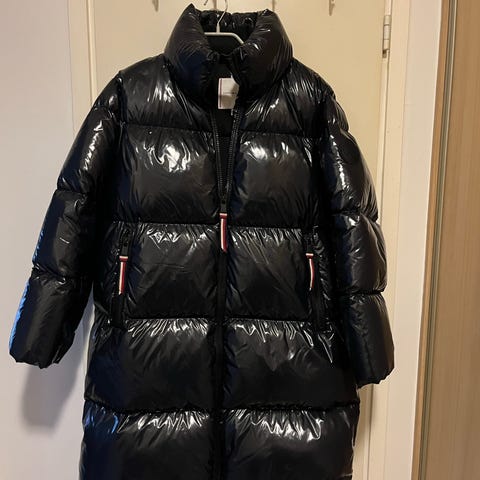 Musta, todella hyvässä kunnossa oleva pitkä untuvatakki.