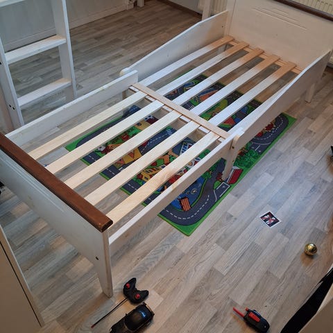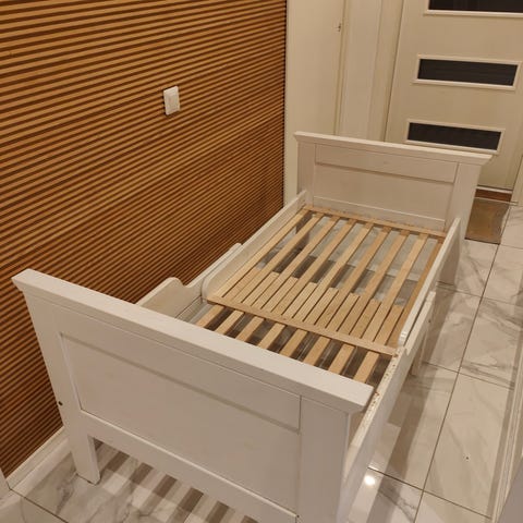 Jatkettava sänky lapselle. Sängyn koko kasassa 87x120 cm.