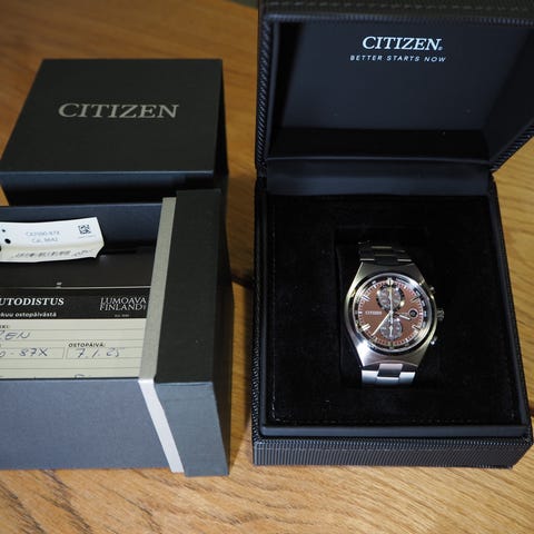 Citizen CA4570-88X Super Titanium Motorsports rannekello ostettu kultajousesta 9.7.2025 kunto kuin uusi. mukana kuitti ja rannekkeen palat, laatikko ja takuutodistus. Tässä kellossa 2vuoden takuu.