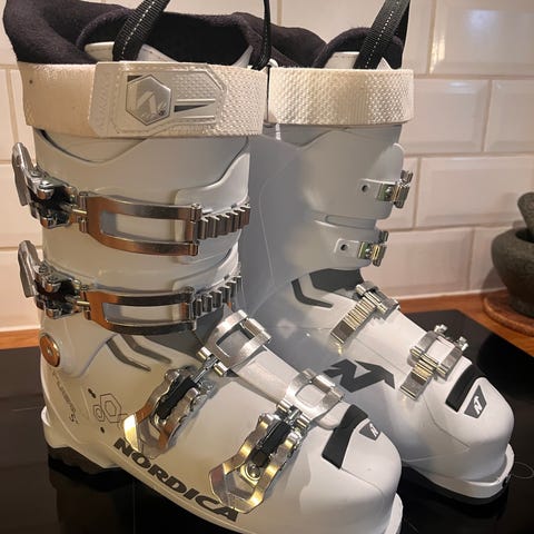 Toisesta suksesta on pieni pala pinnoitteesta lähteny, mutta ei vaikuta toimintaan. Myynnissä myös 24.5 koon monoja toisessa ilmoituksessa