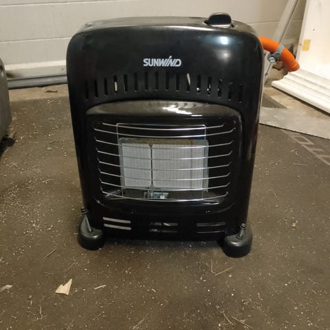 Sunwind kaasulämmitin musta väri, kannettava malli kaasuliitännällä. Sopii tilapäiseen lämmitykseen esimerkiksi ulkotiloissa tai varastoissa. + Letku