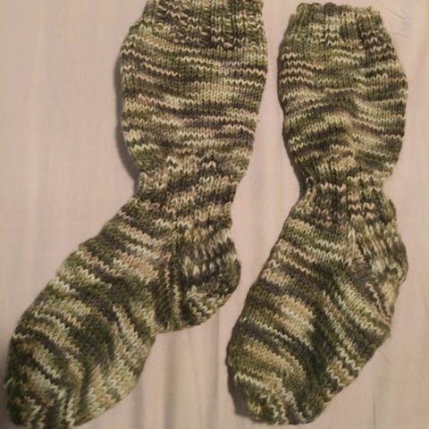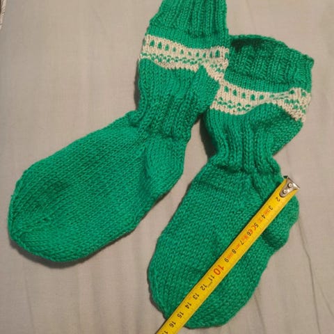Käsintehdyt villasukat, noko n. 1-2 vuotta. Hyvä käytetty kunto. 1€