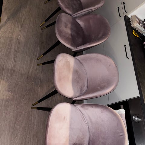 Uudenveroiset tuolit 4kpl tumman oranssilla verhoilulla. Mustat metallijalat.