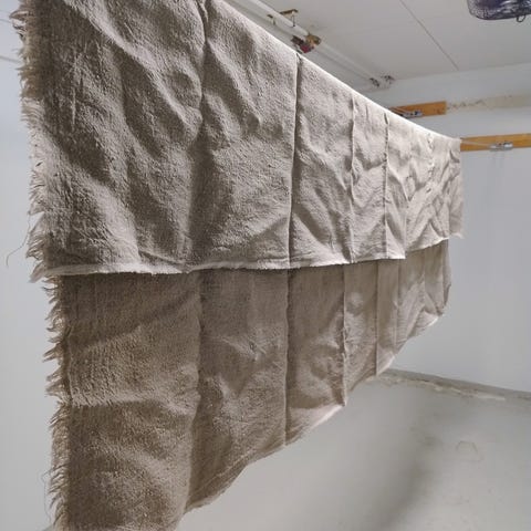 Ylimääräiseksi jäänyt pellavakangas koko l. 150 x pit. 120 cm. Virheetön. Sopii hyvin esim. Tyynynpäälliseksi tai verhoksi.