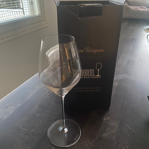 Myydään Dom Pérignon tyhjä pullo laatikkossa .