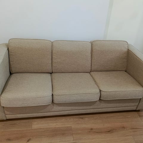 Ostettu Askosta 6 vuotta sitten. Hyvässä kunnossa, ja tekstiilipesurilla saisi uuden veroisen näköisen. Korkeus maasta istuintyynyn yläosaan 40cm, maasta selkänojan yläosaan n,. 64cm. Mukava istua, tyynyt tukevat koko selkää ja päälliset saa irroitettua pois pesuun. Myyn pois muuton alta! Nouto Kirkkotieltä tai kysy kuljetusmahdollisuudesta.