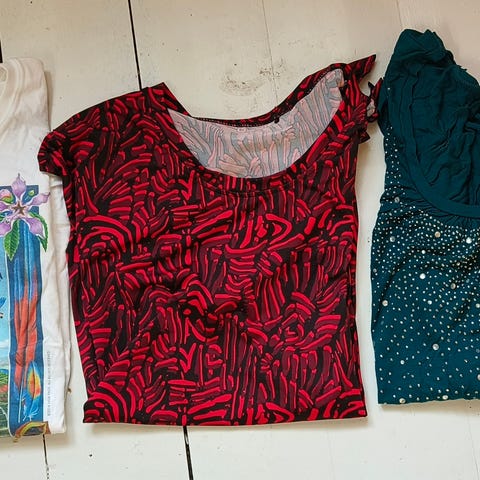 Kimalteet paidan takapuolella! Musta koko L ja valkoinen XL. Ei huomaa juurikaan kokoeroa. Ehkä kertaalleen pidetty molemmat. Yht. 15€