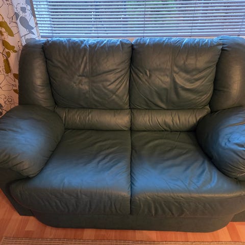 Myydään pois hyväkuntoinen tummanvihreä nahkasohva. Nahassa käytöstä johtunutta patinaa.