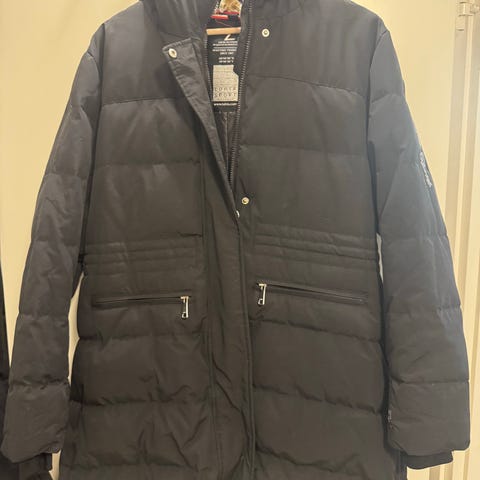 Luhta naisten talvitakki, koko 38, tummanharmaa väri. Takissa on huppu ja vetoketjutaskut. Hyvässä kunnossa.