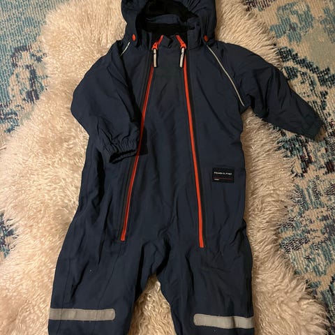 Muutama haalea voikukan aiheuttama tahra. Jalkalenksut rispaantuneet. Ei reikiä haalarissa.