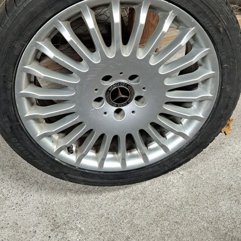 18" Mercedeksen alkuperäiset vanteet ja Pirellin scorpion winter kitkarenkaat.