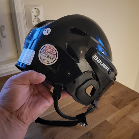 Myydään Bauer Lil Sport luistelukypärä kokoa 48,5 - 54 cm. Hyväkuntoinen paitsi toiselta puolelta kiinnitysremmiä pitävä muovinen osa on katkennut. Sen saa varmasti esim ilmastointiteipillä kiinnitettyä yhteen. Näkyy kolmannessa kuvassa. Huomioitu myyntihinnassa.