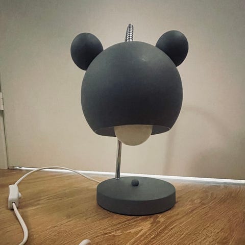 Hyväkuntoinen pöytävalaisin kukkakuosisella varjostimella. Korkeus 57cm. Johdossa katkaisija.