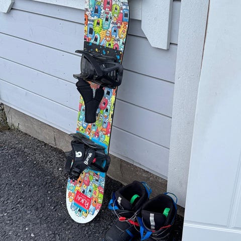 Vähän käytetyt lapsen Burton lumilauta ja lumilautailukengät. 110cm/XS, 34.