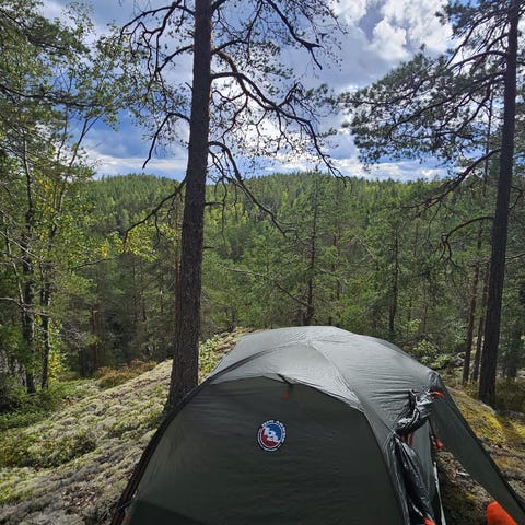 Big Agneksen huippukupoli. Uudenveroinen, long-versio eli normaaliversiota isompi sisätiloiltaan. Mukaan teltan oma footprint, jolla teltan pystytys onnistuu ilman sisätelttaa eli pystytys onnistuu sateella ilman että sisäteltta kastuu. Nukuttu tasan yksi yö, käytännössä uudenveroinen. Painoa teltalla 1,79 kg, footprint 227 g.