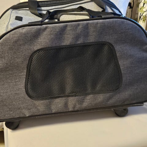 Vain muutaman kerran käytetty laukku, jossa pieni pentukoira tykkäsi olla. Lämmin sisältä, untuvainen