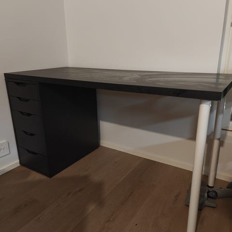 Valkoinen taso, harmaat säädettävät jalat (manuaali). Mitat 140cm x 140cm. Nouto Maskusta. Tukeva ja laadukas pöytä yleensä toimistoissa käytetty.