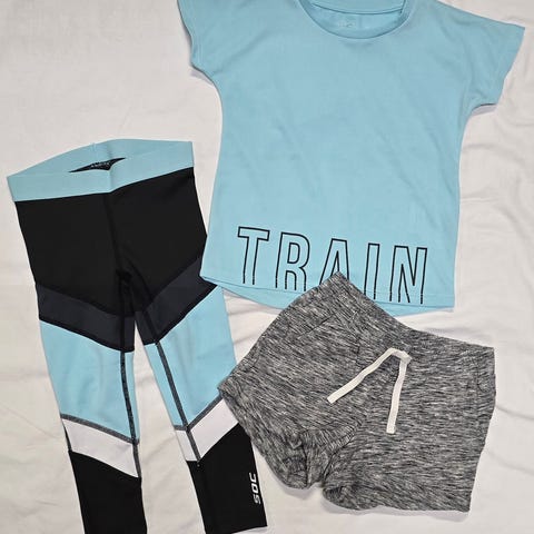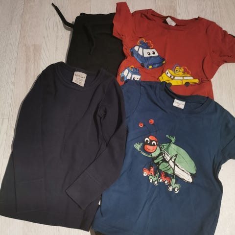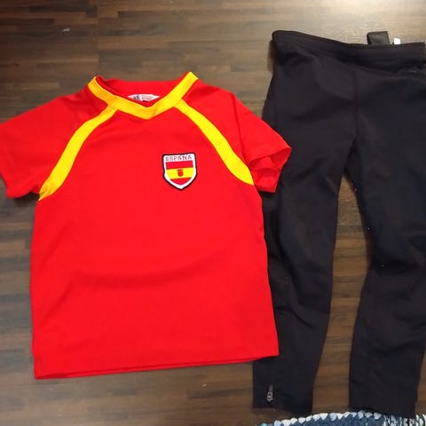 Hyväkuntoisia socin urheiluvaatteita koossa 98-104cm, jotka ovat olleet melko vähäisellä käytöllä. Kaksi t-paitaa, kahdet shortsit ja yhdet verkkahousut.