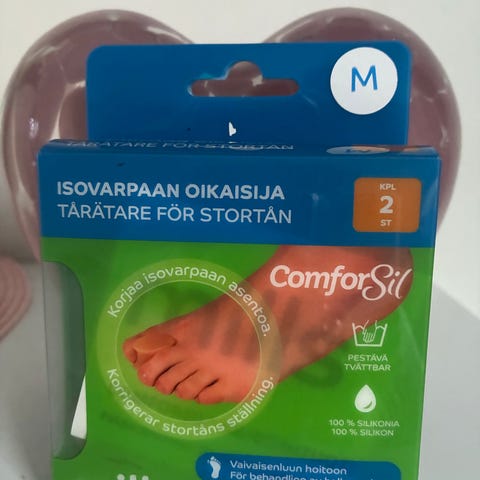 Comforsil Saumaton Varvasensuojasuoja koko L. Suojaa varpaita hankausta ja painetta vastaan. Väri ruskea, materiaali pehmeä ja joustava. Sopii käytettäväksi kengissä, jotka aiheuttavat varpaiden hiertymistä. Pehmeä, istuu hyvin. Vahvistetut tukialueet. Pestävä, mukana pesupussi.