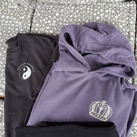 Mukana Ninjago kääntöpaljettipaita, Disney Autot -paita, Cube Co, Mos, Benetton, Mywear ja lämmin Italia -collegetakki / -huppari. Huppari on nukkaantunut ja siihen on jäänyt ilmeisesti liimatahrat (kts. kuvat).