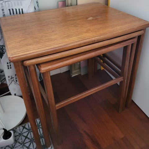 Upea tanskalainen sarjapöytä! Siistissä kunnossa, pientä iän tuomaa patinaa. Juuri huollettu.
