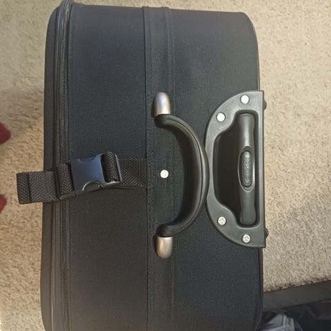 Hyväkuntoinen veto matkalaukku. Korkeus 58 cm, syvyys 18 cm ja leveys 38 cm