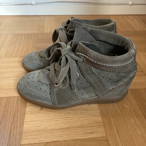 Kengissä on tarrakiinnitys . HUOM! OSTIN TÄÄLTÄ TORISTA KÄYTTÄMÄTTÖMINÄ, JOTEN AITOUSTODISTETTA EI OLE. Myyjä sanoi että on ostettu Isabel marant sivuilta, mutta silti en voi olla 100% varma, että pitääkö paikkaansa. Joten omalla vastuulla jos ei olisikaan aidot. Uskon silti olevan, koska kengissä on tekstit.