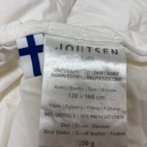 Uusi, käyttämätön,ylellinen Joutsen Jalo untuvapeite. Koko 150 x 210 cm ja väriltään valkoinen. Peite on täytetty untuvalla. On miellyttävämpi käyttää, kuin peitot missä on höyheniä mukana.Kangas hieno puuvillabatisti. Pesu 60 asteessa. Uuden hinta Joutsen verkkokaupassa 260€. Vain nouto.