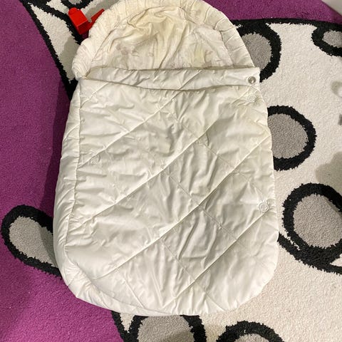 Maxi-Cosi-merkin lämpöpussi rattaisiin tai turvaistuimeen. Enemmän taapero- kuin vauvakokoa.