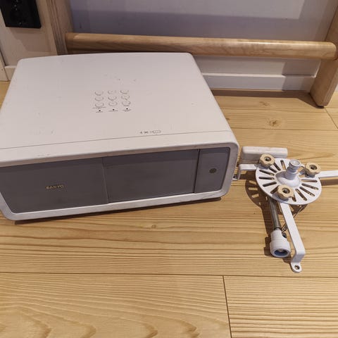 Optoman hd 30 Lv videotykki ollut suht vähällä käytöllä. diakankaalla jonka leveys noin 180 cm ja korkeus noin 160 cm. Kangas on katto kiinnityksellä. Mukaan myös seinä teline ( vanha televisio teline). On just tykin kokoinen.