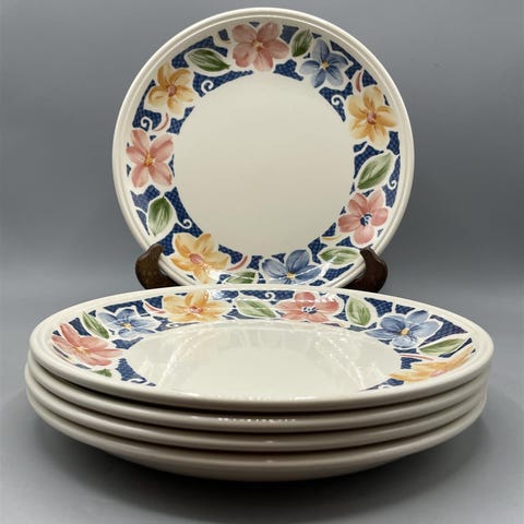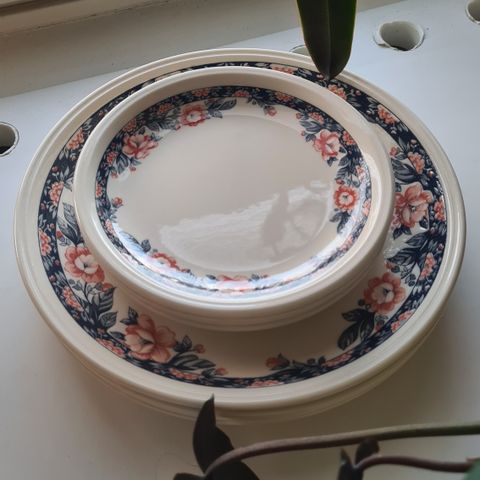 Kuvan lautaset yhteishintaan 10€. Viisi ehjää ja yksi lisäksi jossa halkeama reunassa.