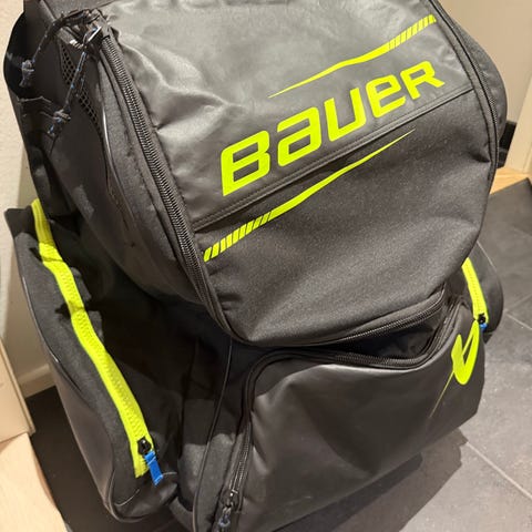 Päällisin puolin pyyhitty pölyt, mutta tarkempi puhdistus jää ostajalle. Laukku ei haise (ei ole käytetty jääkiekkokamojen kuskauksessa).