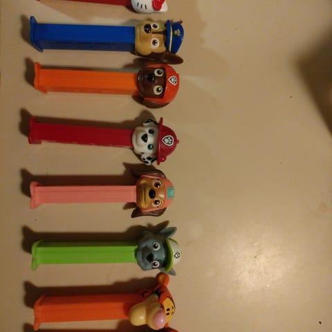 Pez hahmot Pez karkkikoneet eri väreissä. Sisältää useita eri hahmoja ja värejä. Sopii Pez karkkien jakamiseen ja keräilyyn.