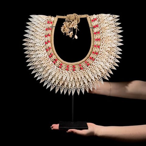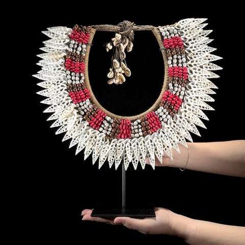 Simpukaketju räätälöidyllä jalustalla Papua-Uudessa-Guineasta.