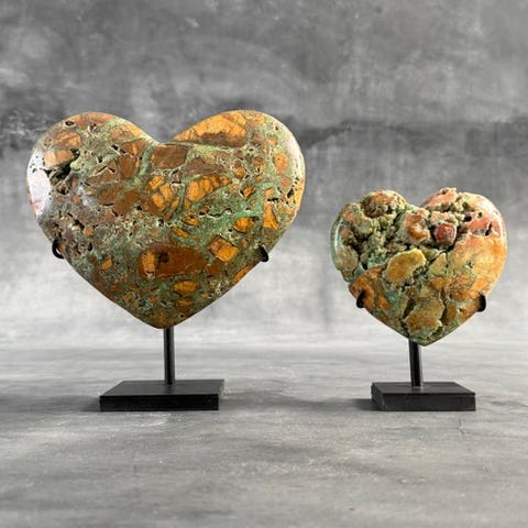 Ihastuttava setti kolmesta vihreästä smithsonite-pallosta räätälöidyillä jalustoilla.