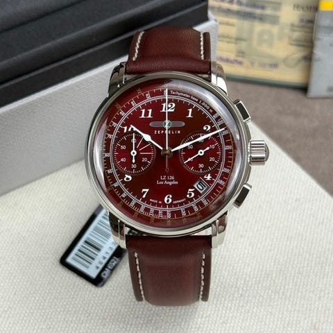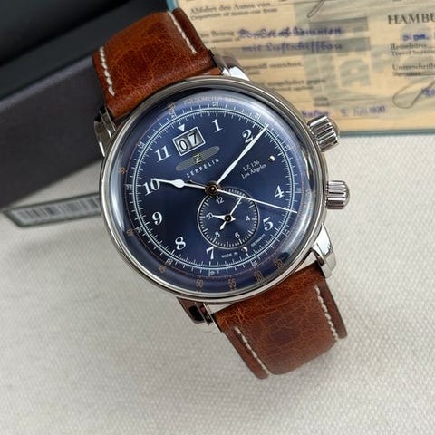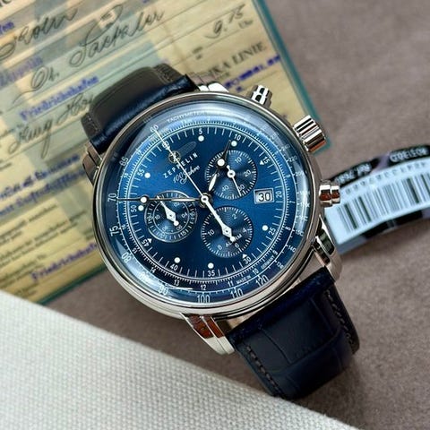 Upea ja klassisesti muotoiltu Zeppelin-kello, Atlantic-sarjasta. Viitenumero 8442-3. Kellossa on teräksinen kotelo ja se toimii laadukkaalla kvartsikoneistolla. Kellossa on GMT-osoitin ja päivämääränäyttö 3:n tunnin kohdalla. Klassinen muotoilu ja selkeä lukukelpoinen kellotaulu, jossa on värikkäitä yksityiskohtia.